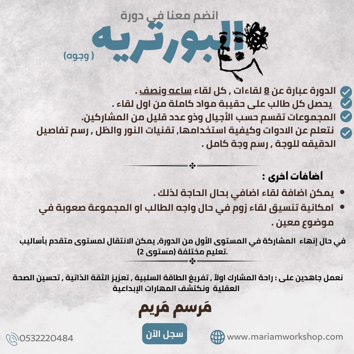 🖌️ تفاصيل دورة رسم البورتريه (وجوه)